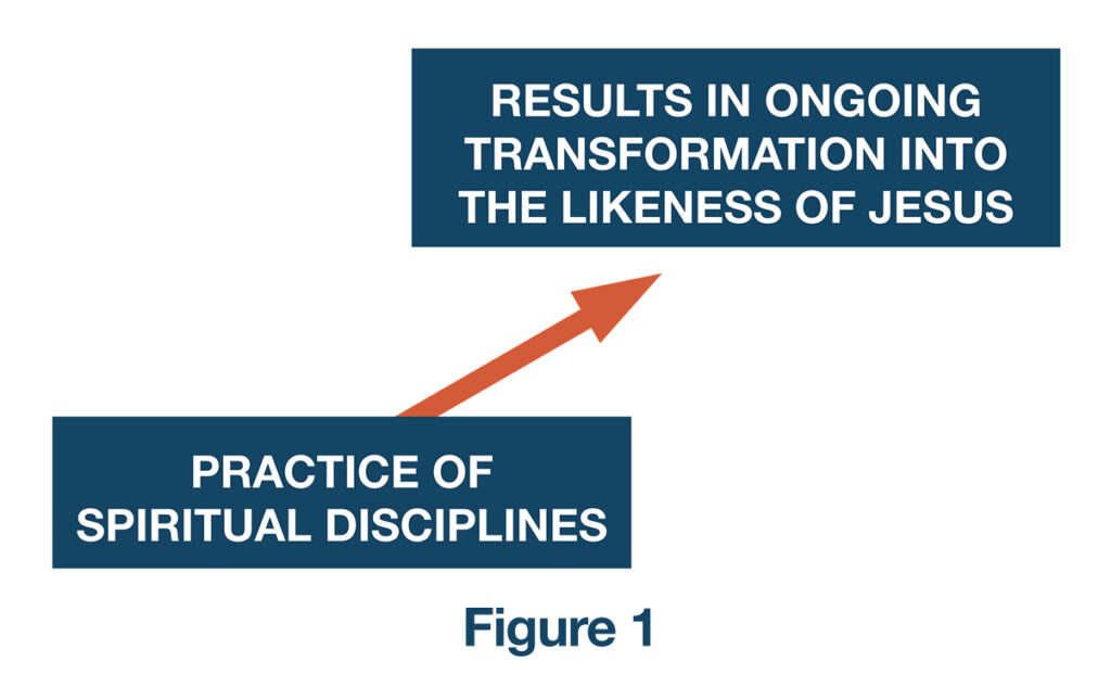 As I studied and read about spiritual formation I encountered definitions of formation that emphasized both character transformation and transformation into Christlikeness. Spiritual disciplines were always linked to the transformation process as vital elements in the formational journey. The process could be depicted as follows (figure 1):